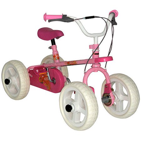 Quadra Bike, Pink: Age recommendation: 3-6 years oldQuad, trike and bike all-in-oneUnique axle system, for easy and quick wheel changeHigh efficient band brakes, front and rearAffordable quality and durability with multiple use applicationsFully enclosed chain guardPuncture proof rubber tiresAdjustable seat heightAssembled dimensions: 36" x 17" x 19"Product weight: 25 lbsBox dimensions: 33" x 11" x 15"Box weight: 27 lbsColor: pink